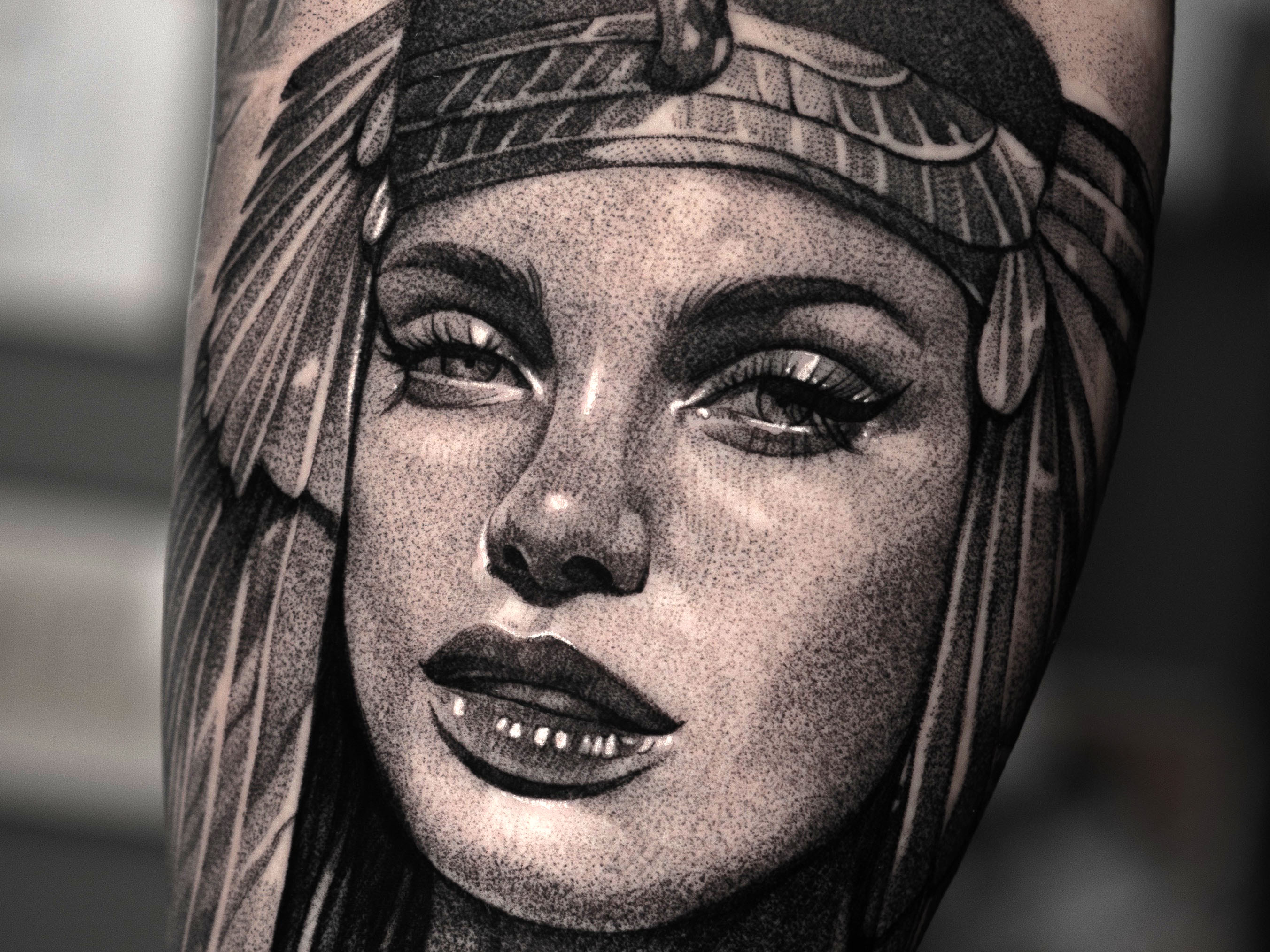 Portrait-Tattoos werden immer populärer. Sie sind eng verwandt mit photo-realistischen Tattoos, da Kunden oft ihre Liebsten oder prominente Charakter auf ihrem Körper verewigen möchten. Porträt-Tattoos können eine große Herausforderung sein — der Tätowierer muß alle Aspekte von einem Photo auf deiner Hautstruktur und Körperform abbilden. Gut gemacht sind sie eine wirklich schönes und bewegendes Kunstwerk.